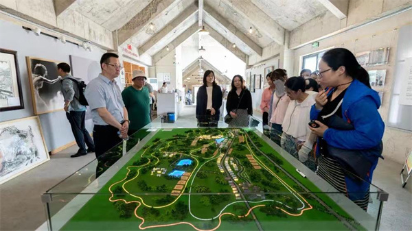 随后,党员老师们又来到位于三十岗乡的崔岗艺术村,在三十岗乡党委书记金华敏等领导的陪同下,大家边走边看边听,认真了解了崔岗从“闲置农房”到“艺术家园”的变迁,看到了崔岗在乡村振兴路上的文化创意探索。一处处原生态风貌,一间间艺术工作室,一场场独具特色的展览,一个个引领思潮的论坛......崔岗实现了原生态与美育的和谐共生,融合发展的“文旅相融,城乡共生”局面,给原本的村落带来了生机和活力,彰显了乡村文化的独特自信。