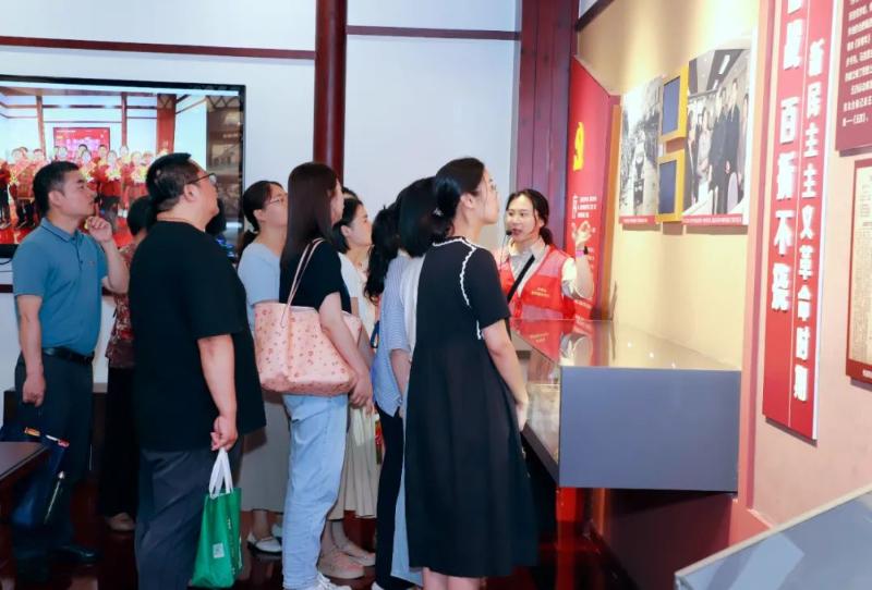 之后,大家跟随讲解员的脚步,来到了二楼党史馆。一张张珍贵难得的照片、刊物,一件件富有寓意的物件,一段段引人深思的红色故事,都是中国共产党一百多年奋斗历史的缩影和精神传承,这种精神时刻激励着每一位党员教师要牢记教育使命,要在立德树人的工作岗位,贯彻红色基因,努力培养出优秀的社会主义建设者和接班人。
