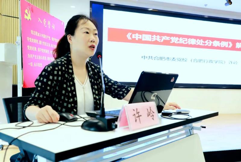 恪守纪律准则,筑牢精神堡垒。参观完党史馆后,大家来到报告厅,聆听由中共合肥市委党校许岭副教授带来的讲座《中国共产党纪律处分条例》解读。许岭副教授从《中国共产党纪律处分条例》修订历程,修订的重要意义,修订的主要内容等方面进行了解读,让党员教师对《条例》有了更清晰的认识,深刻意识到纪律既是“戒尺”,也是“护身符”,引导全体党员必须时刻牢记党的纪律要求,将“六项纪律”内化于心、外化于行,做到心有所畏、言有所戒、行有所止。