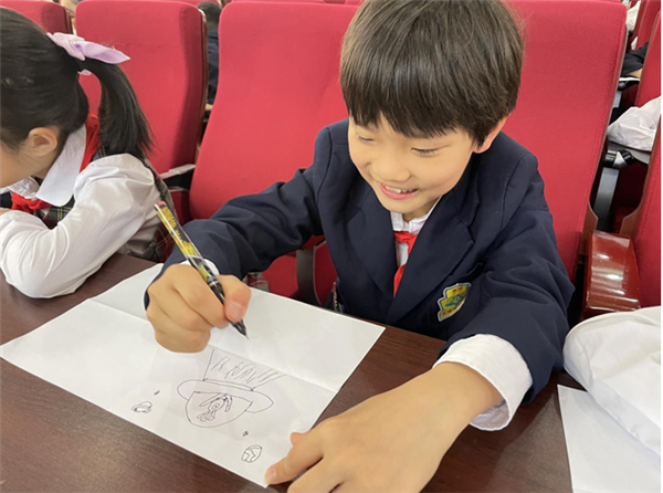 胡老师亲切自然地与孩子们积极互动,通过三分钟画出“我的自画像”的方式,让孩子们试着学会认识自我。通过绘出四宫格里的自己,讲述自己的故事,并引导学生分享以后想成为什么样的人,该如何努力。