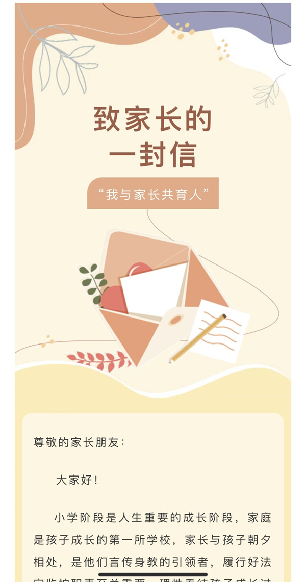 此外,学校也积极组织家庭教育知识宣传活动,通过致家长的一封信、“爱访万家,温暖进行时”家访活动、家校共育分享会等形式向家长普及学生心理发展特点和成长规律相关知识,为孩子的个性化教育指明方向。