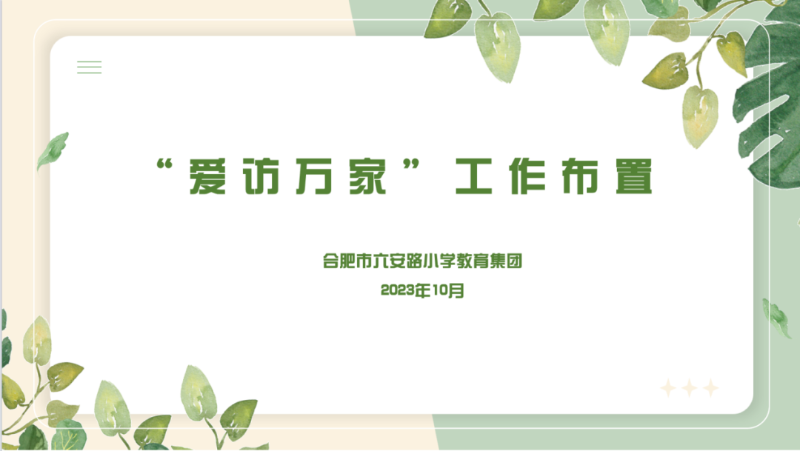 为提升家校协同育人理念,促进家校沟通、密切家校联系,凝聚教育合力。十月底,合肥市六安路小学教育集团正式启动以“家校携手 共育未来”为主题的“爱访万家”活动。