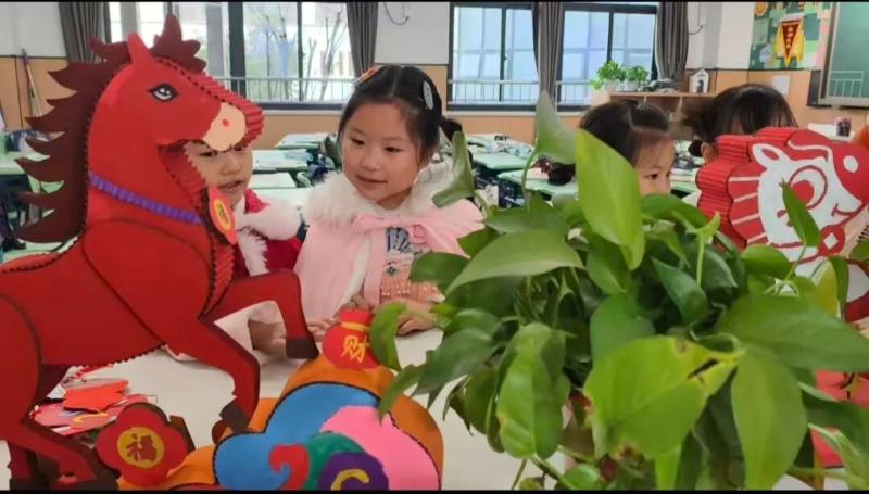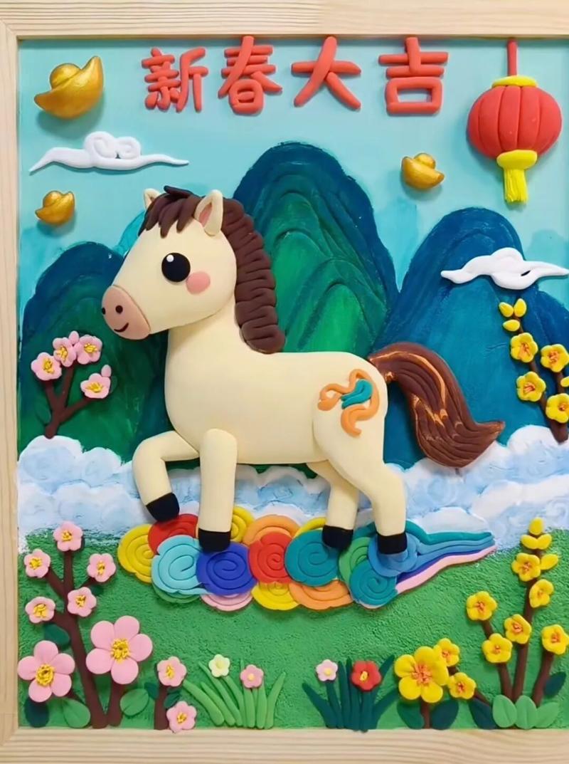 在本次主题活动中,孩子们以纸为草原,以泥为沃土,创作出一件件充满灵思的作品。彩马扬蹄,似欲乘风奔跃;泥马回眸,仿佛守护书香;线马凝望,眼中映满校园春光。每一件手工都闪烁着稚趣的光芒,每一扇窗都成为童年智慧的展台。