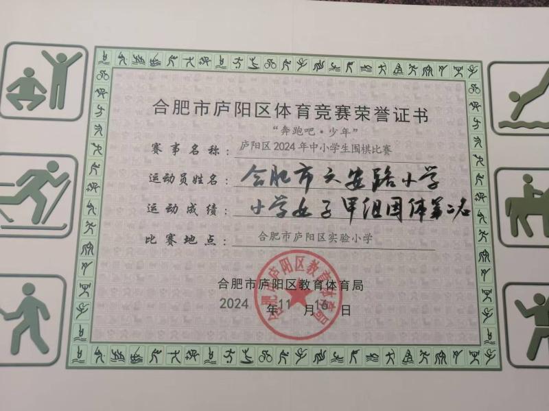 学校围棋队在2024年区中小学生围棋比赛中荣获佳绩。团体赛取得女子甲组团体第二名、男子甲组团体第七名。个人赛中,刘睿妍获女子乙组第二名,开怡萱获女子甲组第六名,柯子清获男子乙组第三名。
