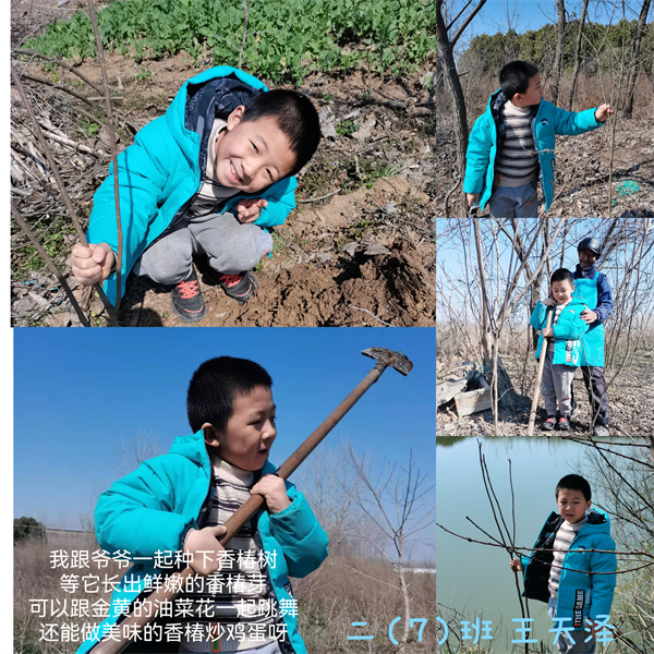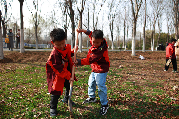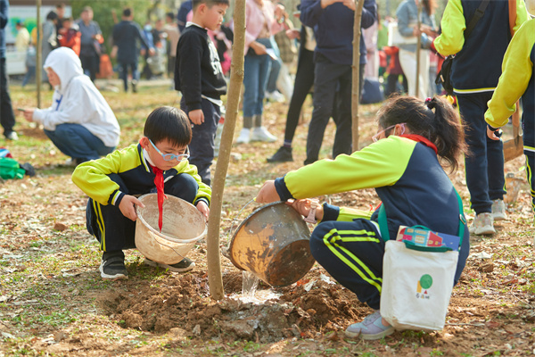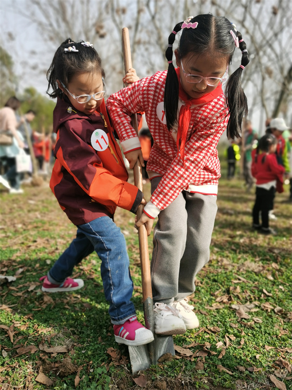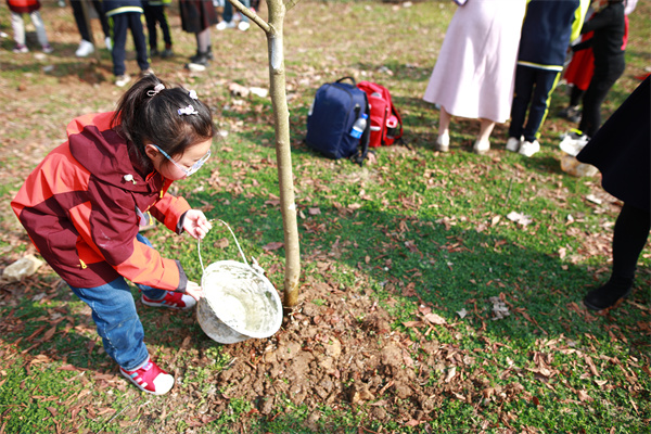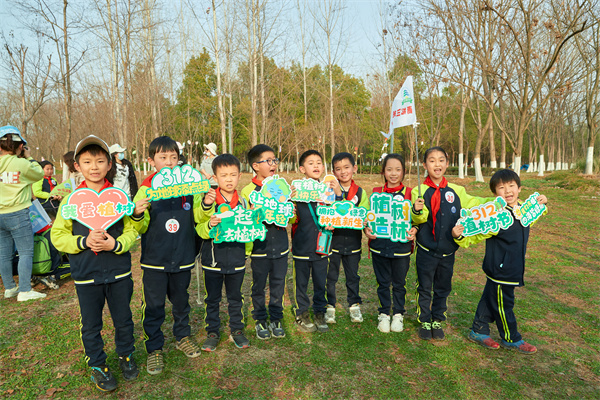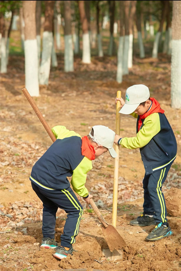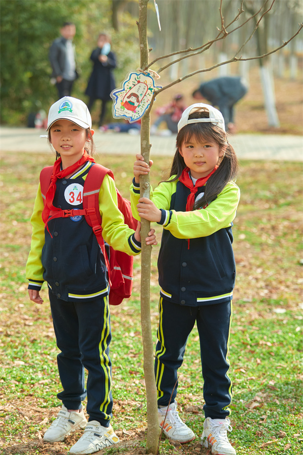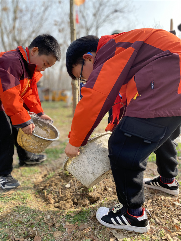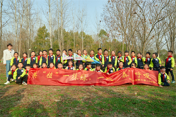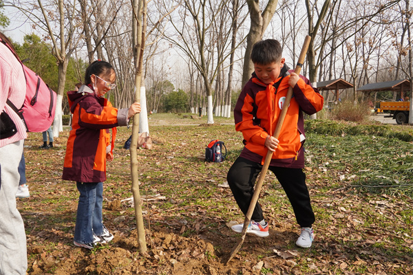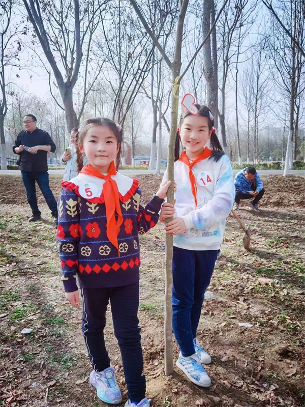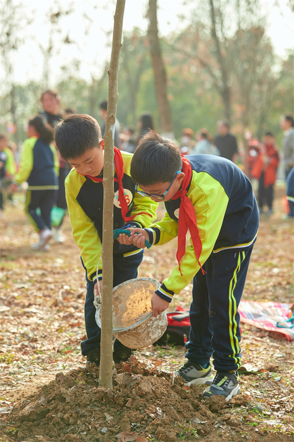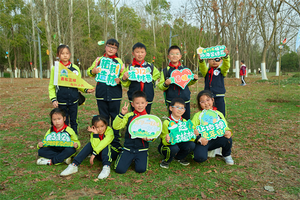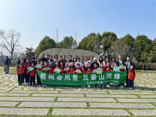 早春三月,草长莺飞,春天带着绿色的气息向我们走来,春风吹绿了枝头的嫩芽,吹绿了地上的小草,也吹动了队员们的热情。为了在队员心间播撒下绿色希望,在保护自然中体验劳动乐趣,获得更多亲近春天的快乐体验,二(1)中队和二(3)中队组织队员进行植树护绿活动。