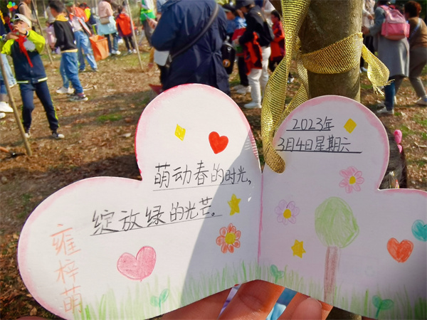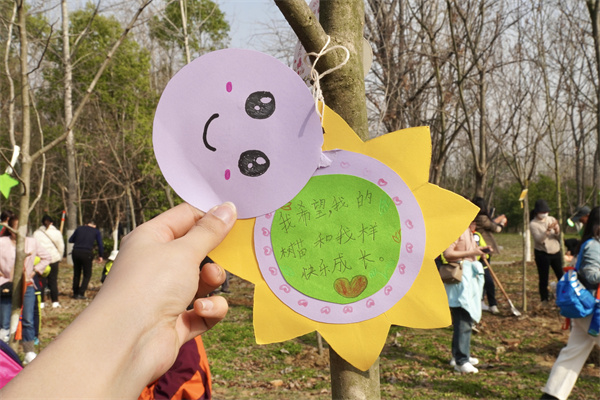 队员们纷纷挂上早已准备好的心愿卡合影留念,相信“环保”这颗种子已悄悄在他们心间种下……