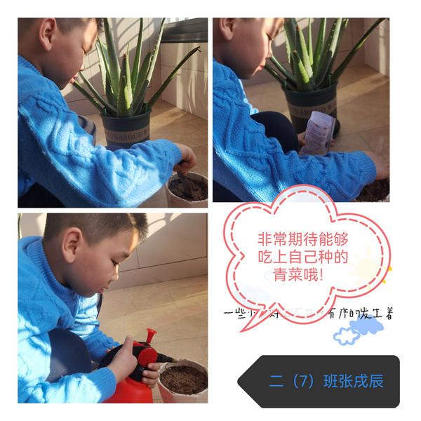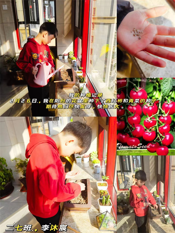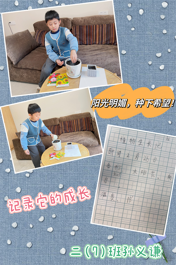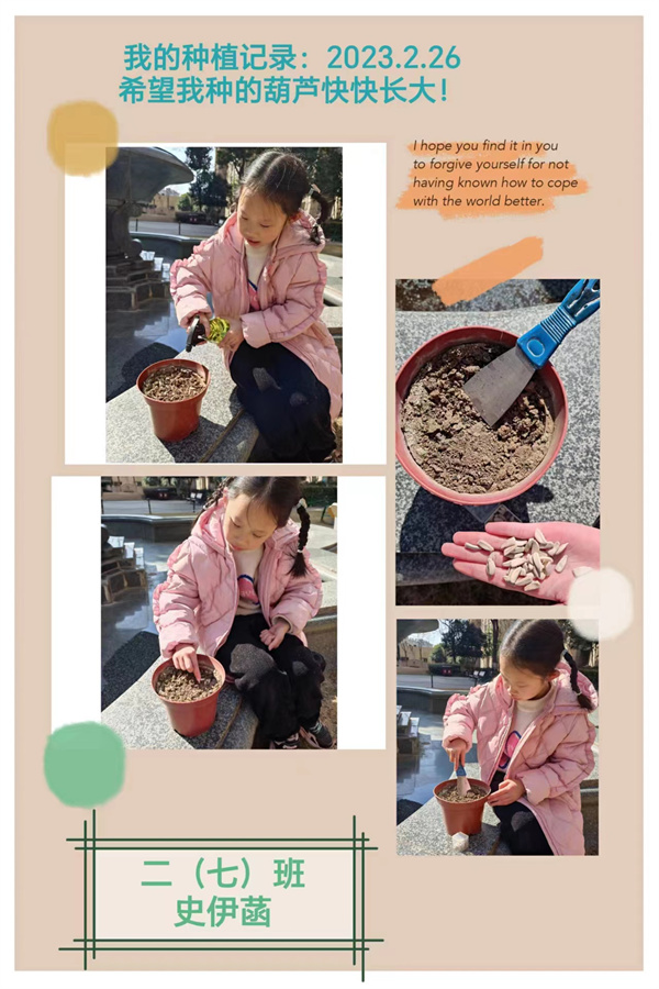 春天,迷离且神秘,不知不觉已来到我们身边。它藏在初绽的桃花中,藏在如丝绦般的柳条间,藏在那和煦的春风里,更藏在那一颗颗破土而出的种子里。为了感受春日的美好,体验劳动的幸福,二(7)中队和四(8)中队的少先队员们在辅导员的带领下开展了“春种一粒‘种’”主题活动,队员们播下种子,种下希望,执笔记录,期待收获,用自己心爱的水培植物装饰着班级,后期将通过分享交流会、自创绘本等多种形式让“爱绿护绿”的信念真正在队员们的内心深处扎根发芽。