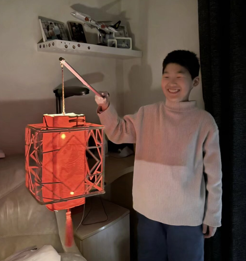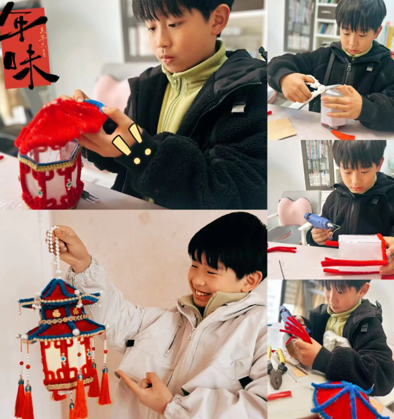 与此同时,一场“变废为宝”的创意花灯制作也在火热进行。孩子们利用硬纸板、扭扭棒、塑料瓶等环保材料,在家长的协助下,剪裁、粘贴、绘画、装饰,制作出一盏盏独具匠心的花灯。当彩灯点亮,光影摇曳,仿佛照亮了传统与现代交汇的奇妙旅程。