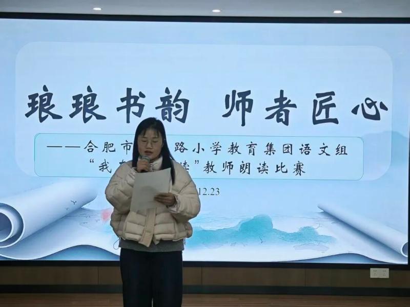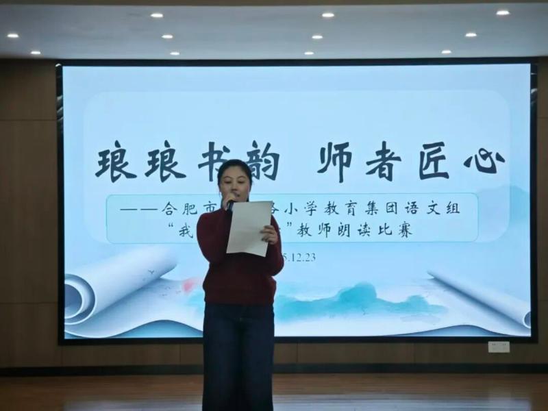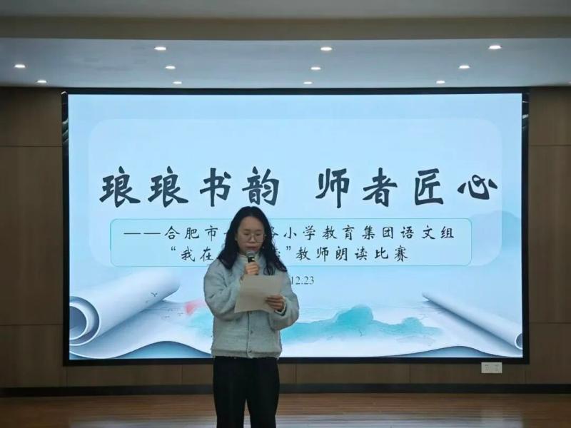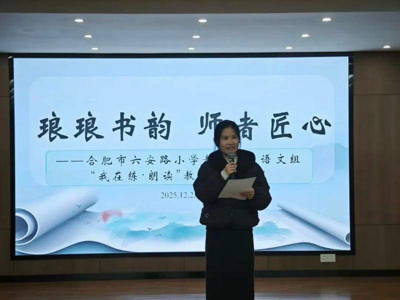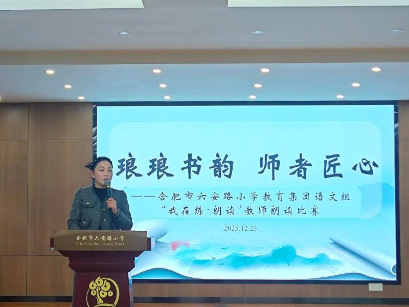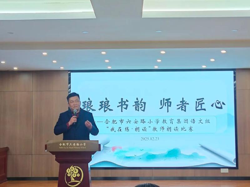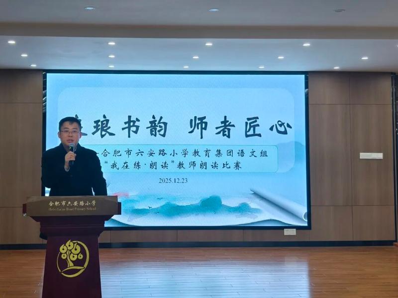 为夯实教师专业素养,锤炼教学基本功,合肥市六安路小学教育集团始终将教师能力提升摆在重要位置。2025年12月23日下午,全体语文教师齐聚阜南路校区报告厅,共同开展“琅琅书韵沁心脾,师者匠心展芳华”主题活动。合肥市六安路小学教育集团党总支副书记、总校长朱清萍,副校长黄杰全程参与并给予指导。从2021年12月启动至今,合肥市六安路小学教育集团“我在练”教师基本功提升活动已持续开展七轮,朗读、练字等常态化训练,早已融入每一位语文教师的日常教学工作中。如今,为给老师们提供展示训练成果、切磋专业技能的平台,集团语文组以“我在练·朗读”为主题,开展教师朗读比赛活动。从12月8日至12日的组内选拔,到12月23日阜南路校区报告厅的正式角逐,全体语文教师以声为媒、以读传情,在层层比拼中展现专业风采,让教育匠心在朗读中闪光。