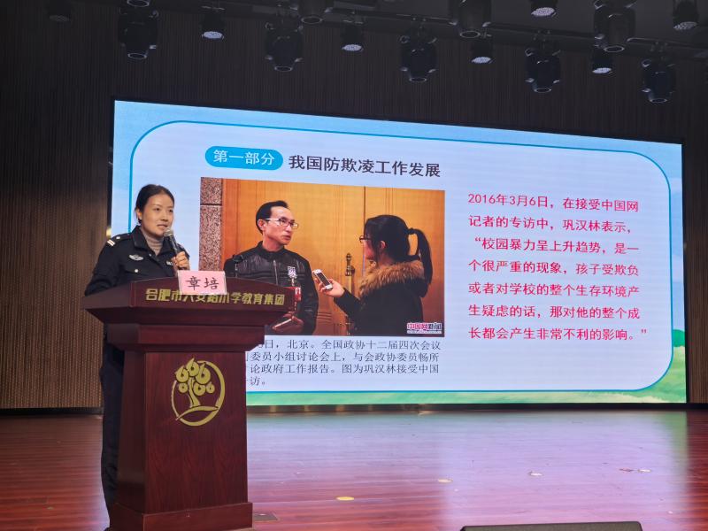 2024年10月23日,逍遥津派出所的章培警官莅临学校,为全体教师奉上了一场精彩的法制安全教育讲座。章警官紧扣“拒绝校园欺凌,共创和谐校园”的主题,着重阐述了教师在预防和应对校园欺凌事件中的核心角色,并提出了切实可行的解决策略。此外,学校还定期组织教师培训,旨在提升教师处理此类问题的能力,确保每位学子都能在温馨和谐的环境中茁壮成长。