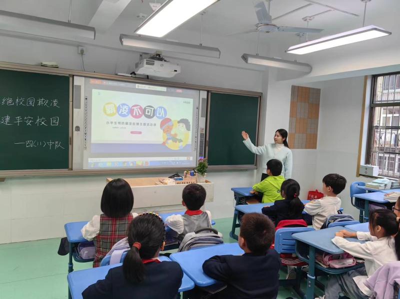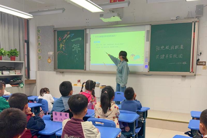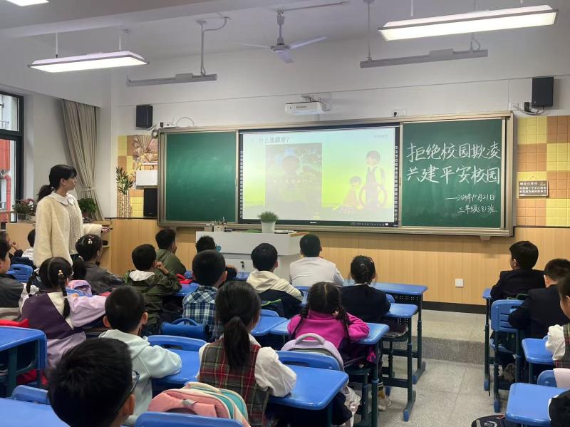 拒绝欺凌,学会关爱。学校专职心理健康教师张雨婷为五、六年级的学生们带来了一堂《预防欺凌 与爱同行》的心理健康课,张老师通过“天黑请闭眼”“一起来回信”等活动,唤起学生们对待校园欺凌的勇气与正义感,引导学生学会关爱、携手同行。