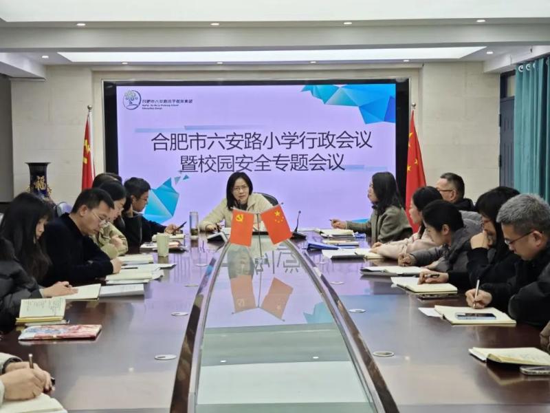 近日,合肥市六安路小学教育集团分别召开党总支会、校长办公会、行政会、专项教师会、全体教师会、保安员培训会等校园安全工作专题会议,逐项梳理,重点布置。聚焦校园安全、用电安全、消防安全、食品安全、学生在校安全等方面提出要求,明确安全责任与意识,进一步织密安全网,全力打造平安校园。