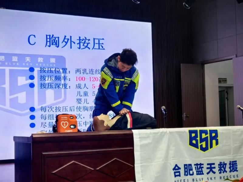 学校特邀请合肥蓝天救援队的专业教练林俊炜开展一场兼顾知识与实操的急救培训,让全体教师提高急救意识,提升应对突发情况的能力。培训中,林教练结合原因、症状、第一时间如何处理,分析学校里常见的突发情况。并通过“理论+实操”讲解心肺复苏、人工呼吸、海姆立克急救法等实用技能,帮助老师们掌握基本的急救知识和技能,让大家心中有招,手中有法,面对突发情况能够及时并准确采取措施,为抢救生命赢得宝贵时间。