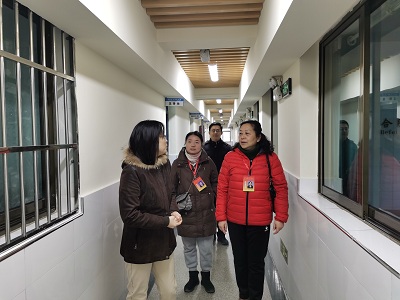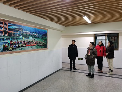 督学组人员在校长朱清萍、副校长黄杰陪同下,参观了学校文化墙布置,督学对学校环境的提升给予了高度赞誉。