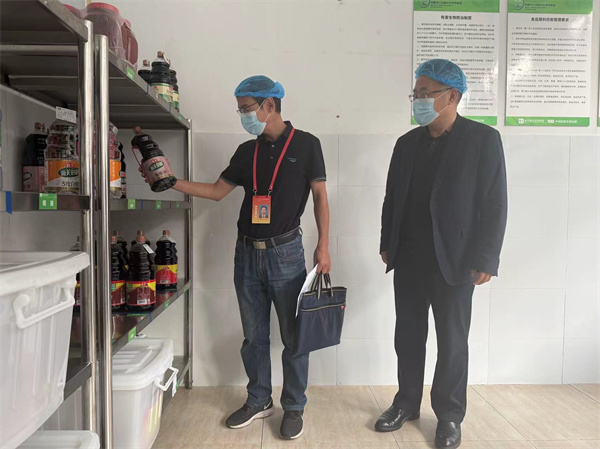 实地检查,筑牢防线。督学首先深入食堂,对食堂环境卫生、设施设备消毒、库房存储、食品留样等关键环节进行了严格检查。通过实地检查,督学详细了解了食堂就餐安全情况及食品安全制度的落实情况,对学校在食品安全方面所做的努力给予了肯定。此外,他还强调,食堂作为学校的重要组成部分,必须时刻保持高度警惕,确保食品安全万无一失。