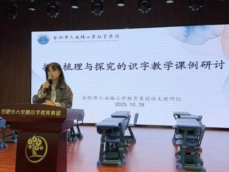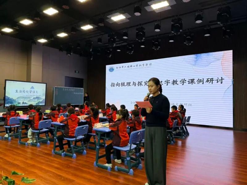 语文组主题教研活动秋意渐深,教研不辍。在这沉淀硕果、积蓄力量的时节,为推进识字教学改革走深走实,引导教师从“教汉字”转向“教思维”,近日,全体语文教师齐聚寿春路校区报告厅,共同开展“指向梳理与探究的识字教学课例研讨”主题教研活动。合肥市六安路小学教育集团党总支副书记、总校长朱清萍,副校长黄杰全程参与并给予指导。