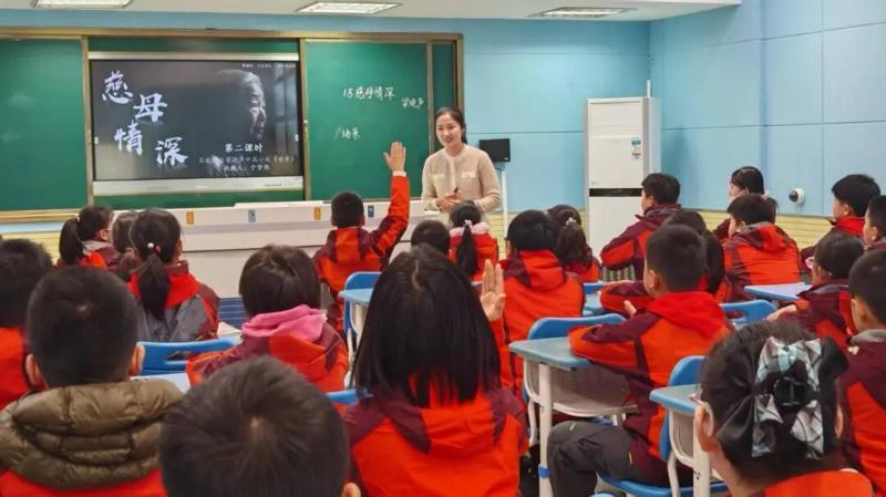 第二节课,于梦伟老师带领五年级学生走进了经典课文《慈母情深》。于老师从场景描写入手,引导学生抓住“震耳欲聋”的环境、母亲“瘦弱的脊背”和“皲裂的手指”等细节,层层深入地品读文字背后深沉的情感。她通过创设情境、配乐朗读等多种方式,带领学生反复涵泳,体会“我”内心的酸楚与母亲无私的爱。课堂上,学生们在深情的朗读与真诚的交流中,深刻感悟到了那份触动心灵的慈母情深,实现了情感熏陶与语文素养的双重提升。