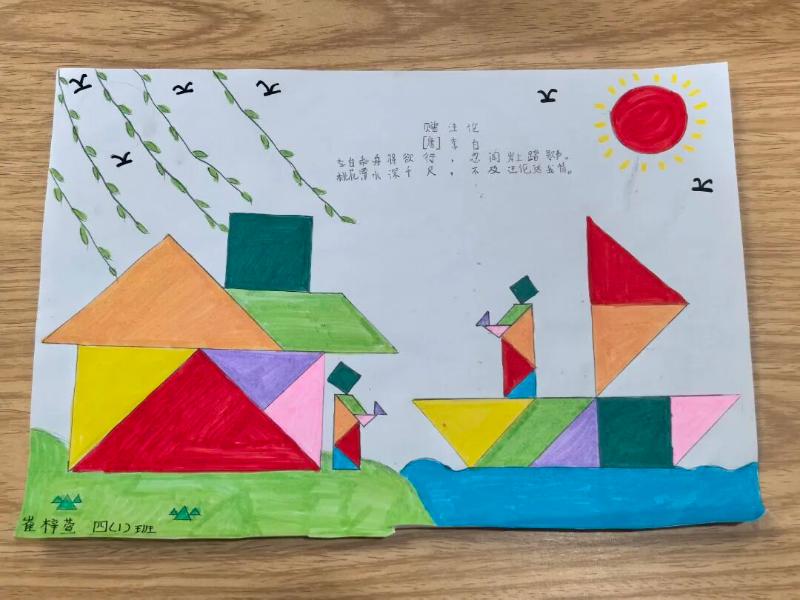 二年级“巧手拼出多彩图”创意小报展风采学生以课本内容“奇妙的七巧板”为基础自由发挥,用七巧板拼出花朵、小动物、交通工具等。课后,孩子们还将创意图形整理成数学小报,让图形之美在纸上绽放。活动不仅帮助学生巩固了图形特征与图形组合知识,更让孩子们体会到课本知识的实用价值,感受图形的变幻之美与组合之妙,体会到数学与生活的紧密联系。