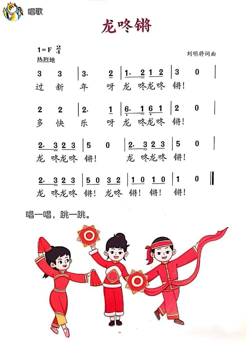 这个寒假,就让我们尽情享受这欢乐的时光,跟着《龙咚锵》的节奏,嗨翻热闹的春节!大家也可以结合中央电视台春节联欢晚会,自学一首自己比较喜欢的歌曲。
