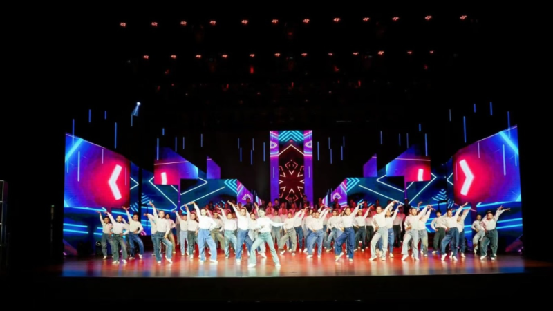 在合肥市第十五届中小学文化艺术节闭幕式暨戏剧(戏曲)专场展演上,舞蹈社团的同学们与其他学校的学生合作表演了青春歌曲《青苹果乐园》。轻快的跳跃、灵动的转身,充满节奏感与力量感;灿烂的笑容、有趣的互动,将歌曲中的青春活力具象化,与观众共同感受舞蹈带来的青春魅力。