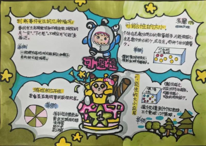 四年级的同学们将“可能性”知识融入趣味游戏,自主设计游戏方案。在亲手操作中体验随机现象,用个性化的方式记录结果,并与伙伴交流收获。活动中,大家不仅清晰理解了事件发生的确定性与不确定性,更直观感受到随机现象中可能性的大小差异。在轻松愉悦的氛围里,同学们进一步深化了对数学知识的理解,积累了宝贵的实践活动经验,切实提升了数学核心素养。