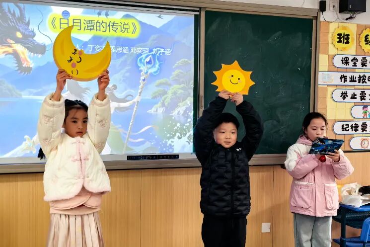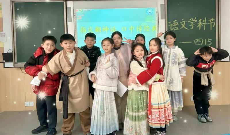 开设“我是民间故事传讲人”特色任务,孩子们或深情叙事、或创意改编表演,将民间故事中的人生智慧与文化魅力娓娓道来。在生动演绎中,同学们深刻感受中华优秀传统文化的深厚底蕴,用精彩的表现角逐“学科达人”,让古老的民间故事在新时代焕发生机。