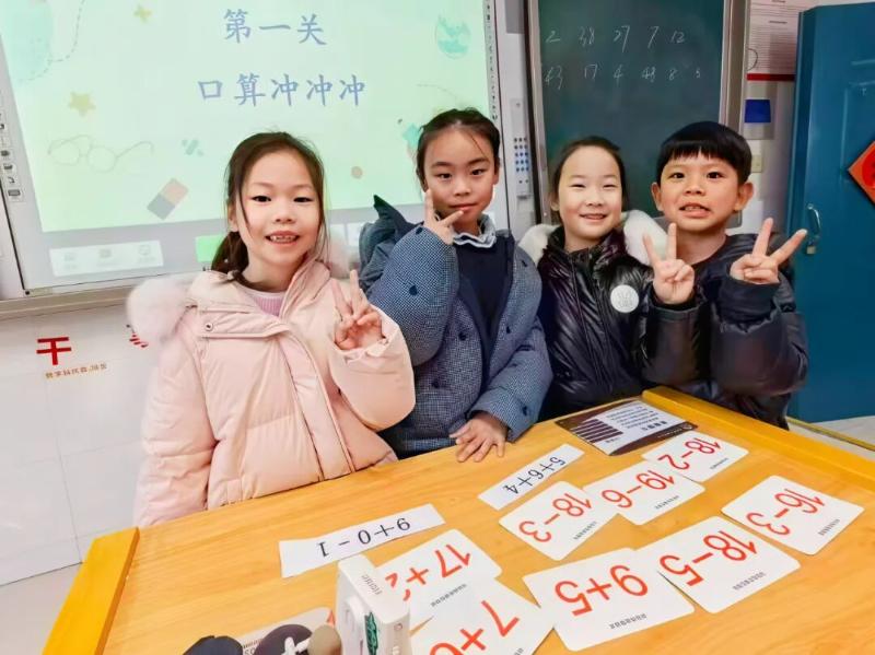 在紧张又愉悦的口算比拼中,孩子们指尖轻点、小嘴速算,清脆的答题声、欢快的笑声交织在一起,不仅锻炼了计算能力,更体会到了数学思维的敏捷与乐趣。