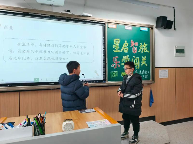 在 “词语采星” 板块,孩子们化身小小识字家,专注投入字词认读挑战。从课本识字表、写字表到课后 “读一读,记一记” 的词语,孩子们都能准确认读、字正腔圆。这一环节以课本为根基,通过清晰响亮的朗读,全面检验学生的字词掌握情况,在夯实语文基础的同时,也培养了孩子们认真严谨的学习态度,为后续语文学习筑牢根基。