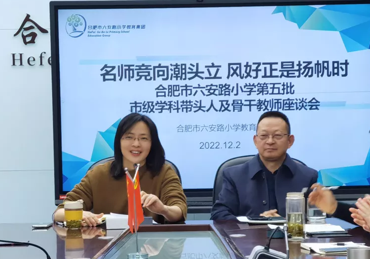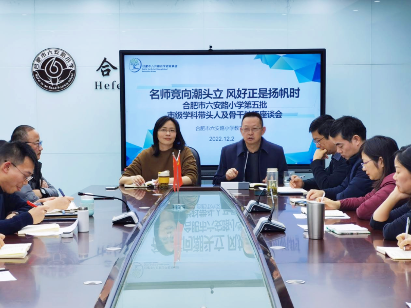 为推动学校教师队伍建设,发挥名优骨干教师的引领、辐射示范作用,激发骨干教师专业提升的内在需求,赋能教师队伍建设提质增效,增强教师团队竞争力和凝聚力。2022年12月2日下午,合肥市六安路小学召开以“名师竞向潮头立,风好正是扬帆时”为主题的第五批市级学科带头人及骨干教师座谈会。会议由副校长黄杰主持。