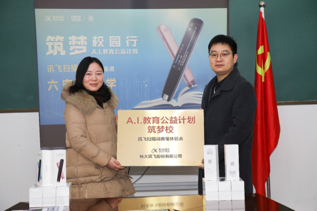 12月16日,科大讯飞A.I.教育公益计划—筑梦校园行活动来到合肥市六安路小学。科大讯飞向我校捐赠了一批最新发布的A.I.学习方向的智能硬件产品——讯飞扫描词典笔。捐赠仪式上,科大讯飞方代表曹彦向我校胡叶萍副校长移交了该批产品,双方围绕人工智能新时代的学习与教学模式变革展开了交流。