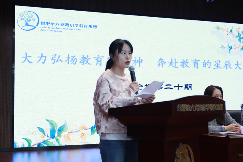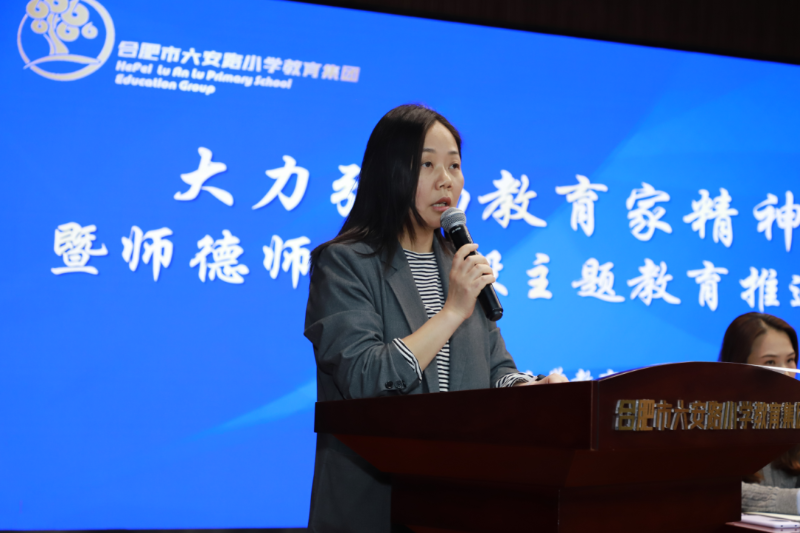 会议第一项议程由办公室副主任高晶晶宣读《合肥市六安路小学教育集团关于大力弘扬教育家精神暨师德师风建设主题教育活动实施方案》,方案围绕指导思想、工作目标、工作要求、工作安排、制度保障等方面详细展开,学校将弘扬践行教育家精神作为学校发展的重要任务,把加强教师师德师风建设作为重要抓手,健全工作机制,创新工作方法,围绕重点工作任务,制定具体实施方案,系统开展师德师风建设各项工作。全体教师共同学习落实,进一步明确师德师风工作的规范标准,原则底线,激发了全体教师的教育情怀与职业使命感,为接下来规范教育教学提供了行为指引。