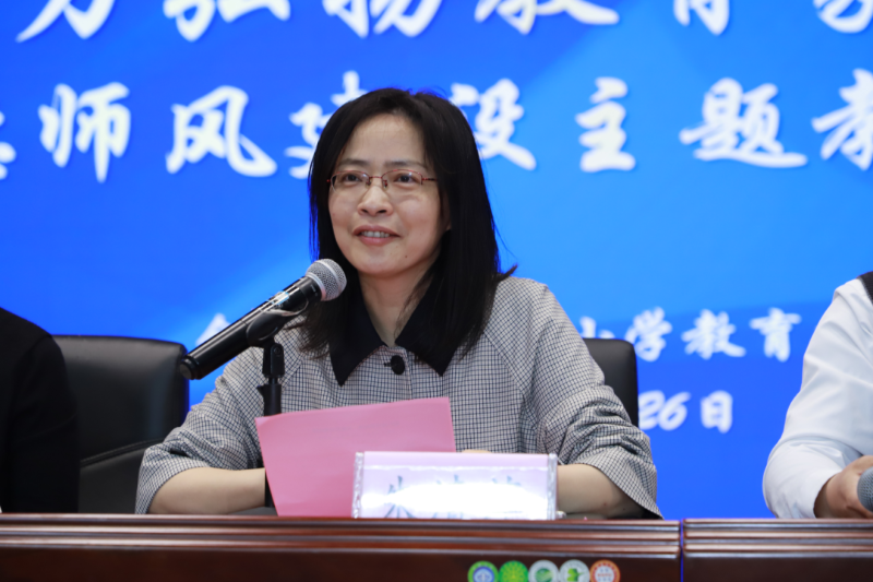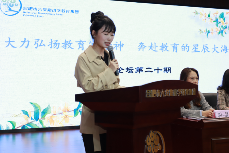 三位教师主题发言之后,合肥市六安路小学教育集团总校长朱清萍发表讲话。她指出,坚守师德,首要之务在于坚守原则与底线,师德不仅是教育的风气所在,更是教育的灵魂精髓。作为庐阳区教育的佼佼者,合肥市六安路小学的教师团队应当将师德师风建设内化于心、外化于行,使之成为每一位教师内心的自觉追求。朱校长鼓励教师们深耕教学一线,不断精进专业知识与教学技能,更要关爱每一位学生,成为他们成长道路上的灯塔与引路人。她强调,师德师风建设的长期性和艰巨性,是一项需要全体教师齐心协力、持续努力的伟大工程。全体教师要始终坚守教育的初心,牢记育人的神圣使命,不断强化自己为人师表、立德树人的责任感与使命感。