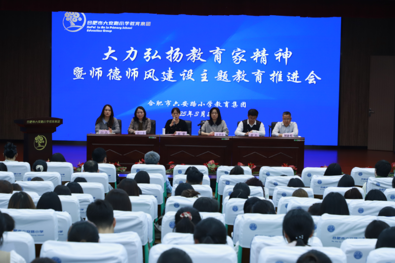 为大力弘扬教育家精神,推进学校师德师风建设工作,3月25日,合肥市六安路小学教育集团在寿春路校区报告厅召开大力弘扬教育家精神暨师德师风建设主题教育推进会,合肥市六安路小学教育集团全体教职工参加会议,庐阳区教育体育局组宣科科长周雯莅临会场并指导工作,会议由黄杰副校长主持。