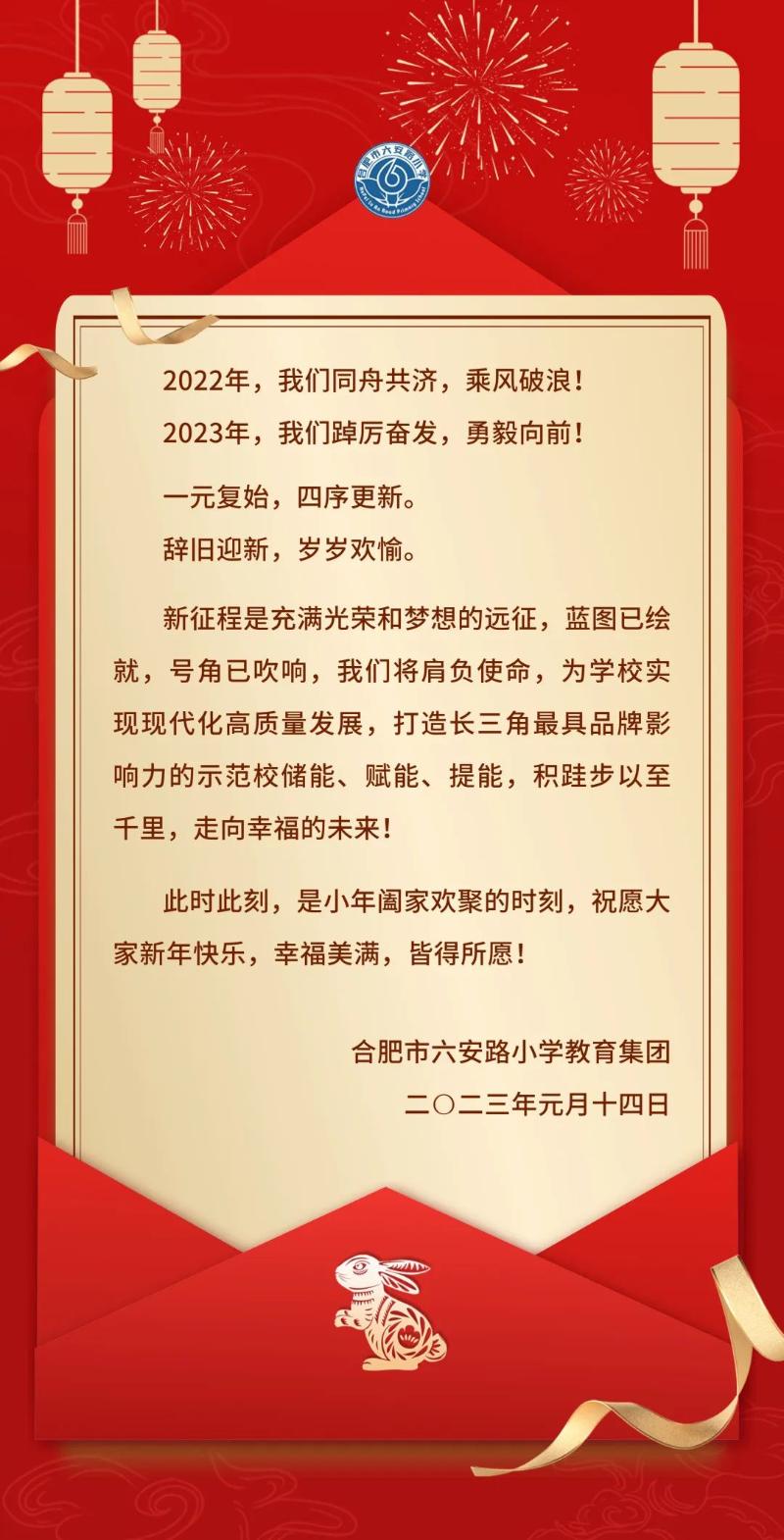 合肥市六安路小学教育集团2023年新春贺信