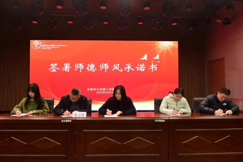 誓言·承诺,铮铮誓言铸师魂。全体教师共同签署《合肥市“三单一案”师德师风标准承诺书》,学习《新时代中小学教师职业行为十项准则》,用铮铮誓言铸就高尚师魂,用实际行动践行育人使命。