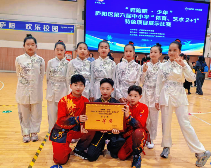 当传统武学的底蕴碰撞现代运动的活力,当东方神韵的雅致交融少年意气的昂扬,一场兼具文化传承与时代超越的视听盛宴在赛场惊艳绽放!11月6日,合肥市六安路小学学子亮相四十五中森林城校区,在“奔跑吧·少年”庐阳区第六届中小学“体育、艺术2+1”特色项目展示比赛中,凭借《风起东方·武韵华章》节目力压群雄,荣膺一等奖!
