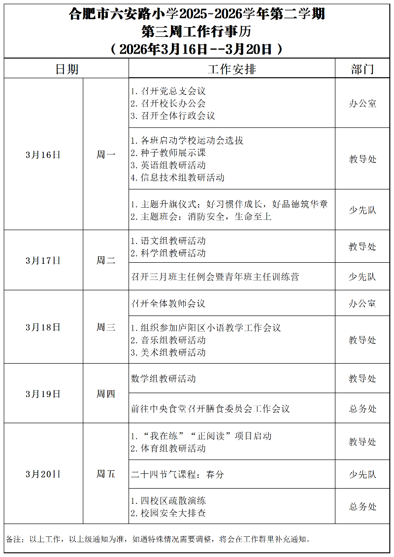 第三周:合肥市六安路小学教育集团2025-2026学年第二学期工作行事历